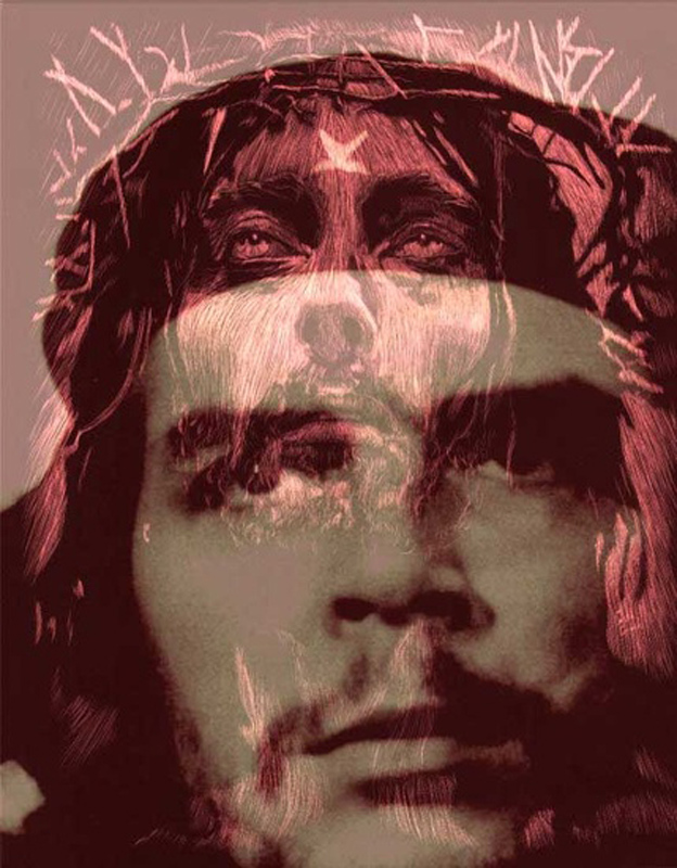 Twee iconen, Jezus en Che, revolutionairen en ver voor hun tijd. In Zuid Amerika zijn het de meeste geziene iconen, onsterfelijk en leest men 'Che vive' of 'Jesus está Vivo' of 'Jesus te ama'