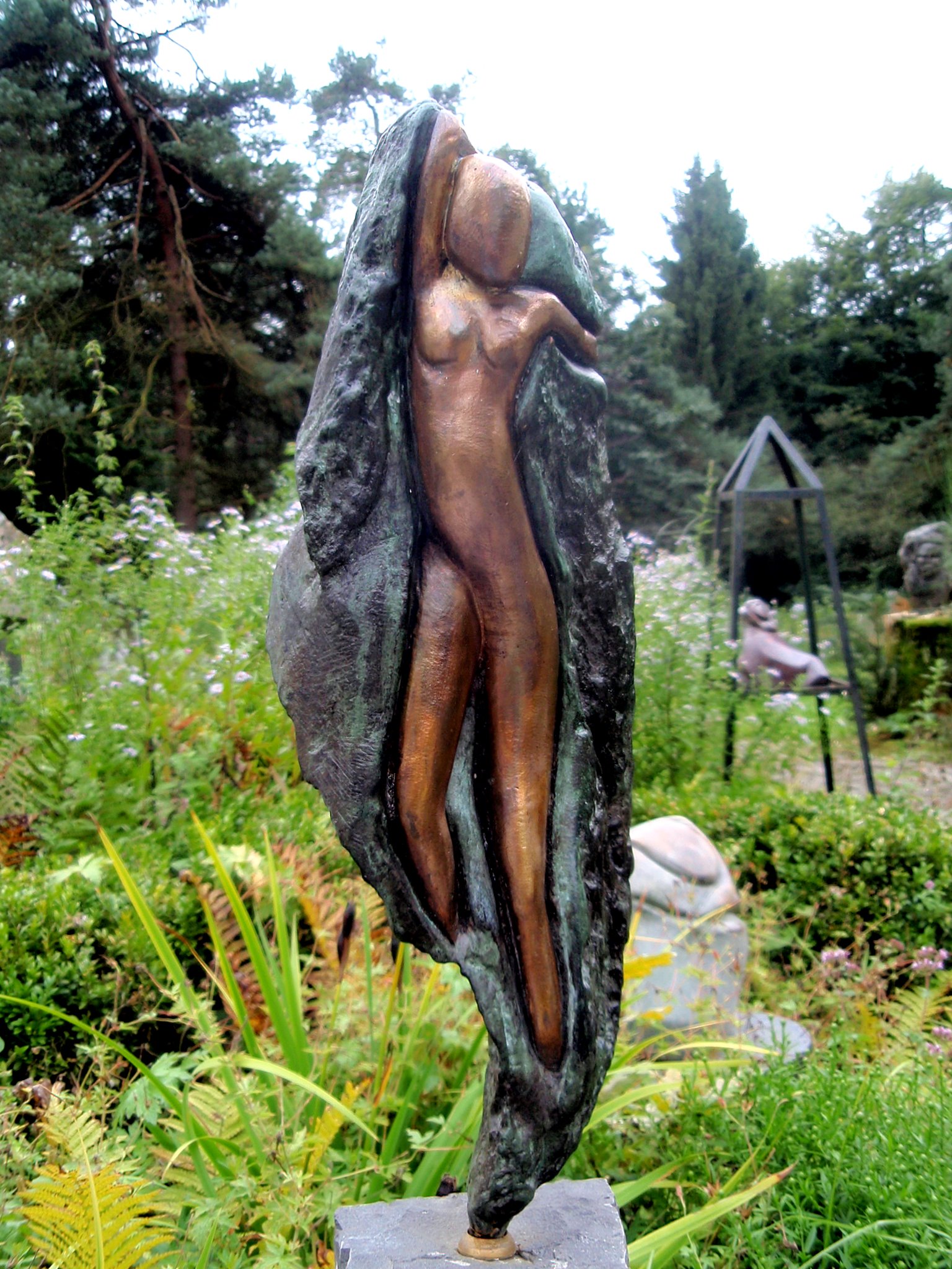 Vrouw Beeld Tuinbeeld Buiten Bronzen Ontworsteling