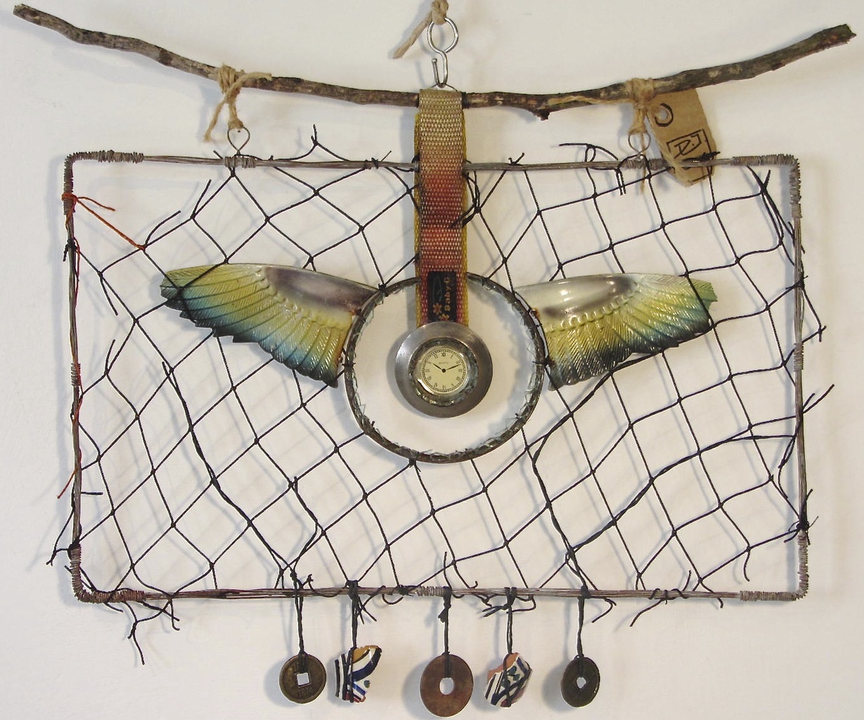 TIME WireWorks series: 2006-2014. Experimenteel assemblage werk met metaal/koperdraad dragers dragen verloren, kapotte en/of gevonden voorwerpen (zwerfies). Zie ook blogpost WireWorks.