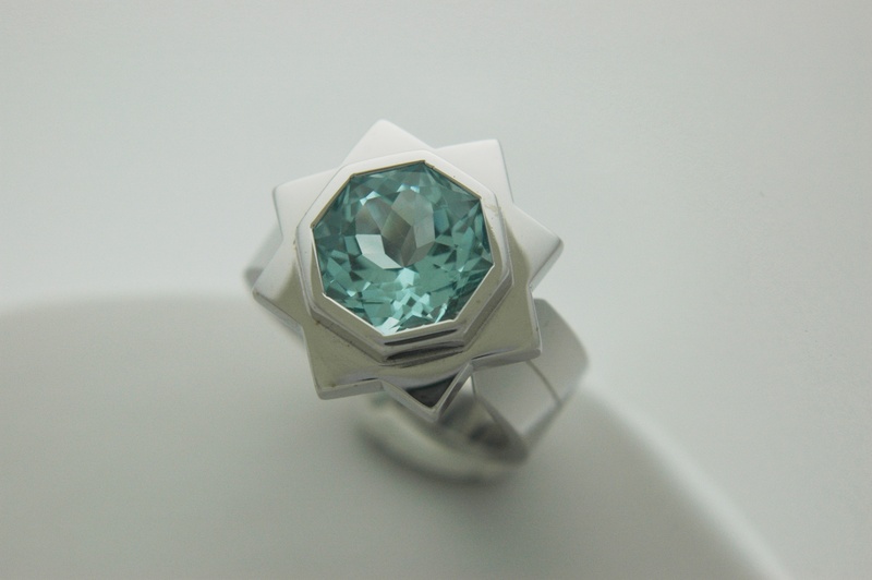 ring wit goud 18 kt, aqaumarijn 3,98 cts