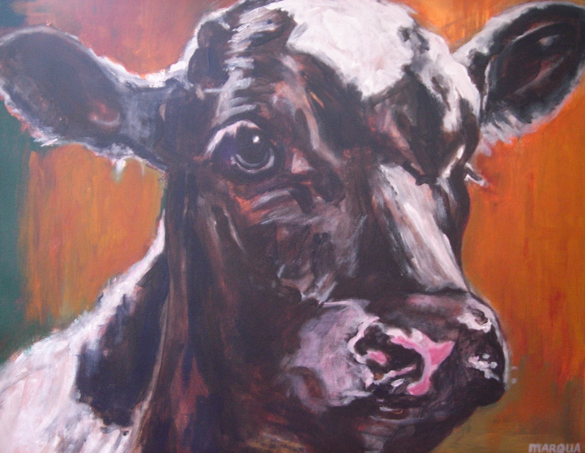 Kalf (Koe), geschilderd in acrylverf op `3-d`doek 50x60x4 cm. Ook portretten van dieren en mensen in opdracht, zeer betaalbaar, in elke prijsklasse!