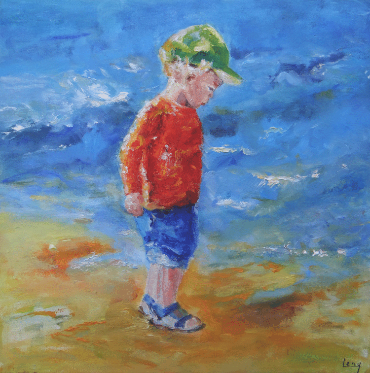 Strand Kind Rood Blauw Groen Beach Child Red Blue Green