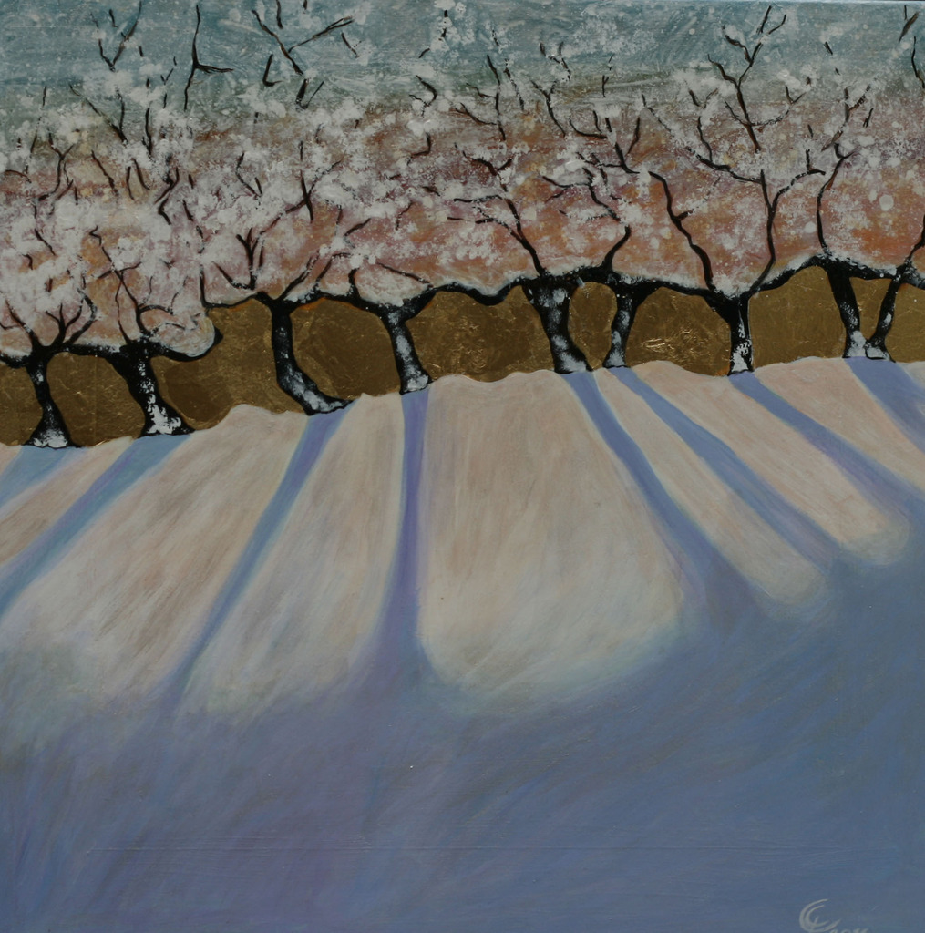 Metaalkunst Metaalplaat Acrylverf Buitenkunst Tuinschilderij Mixed Media Bladgoud Sneeuw