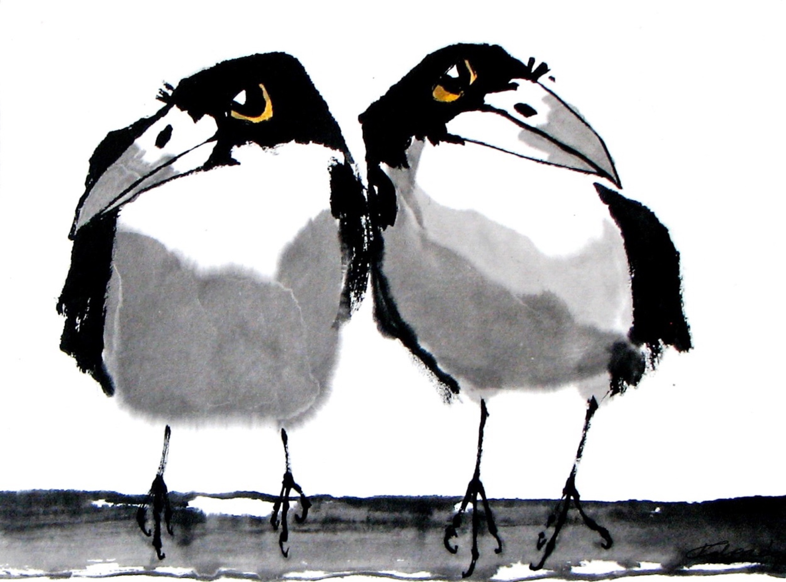 Art Samen Inkt Birds Zen Schilderen Nature Rijstpapier Roeken Inkpainting