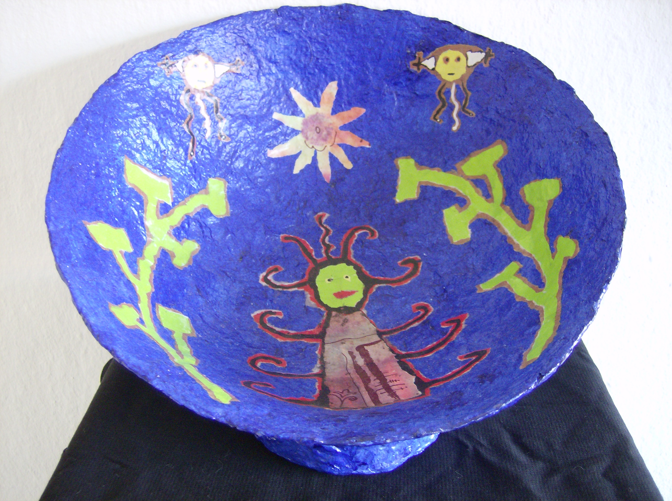 papier-maché schaal geïnspireerd op een afbeelding van Tatei Urianaku, de aardgodin die zaait