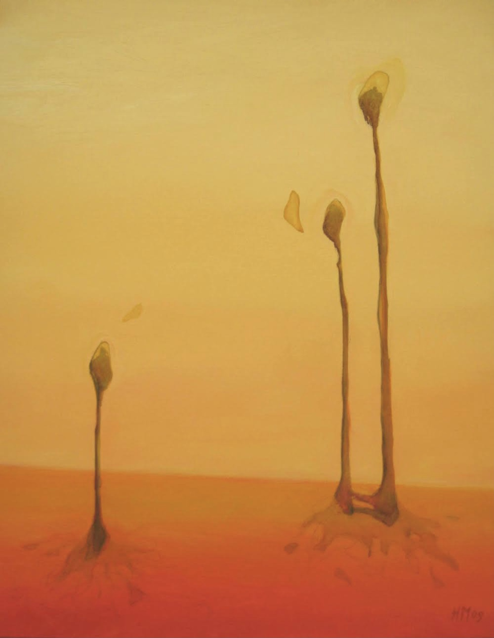 In de schilderijen van Heleen Makkinga is haar fascinatie te zien voor de wereld van de microscoop en de telescoop.Deze geheimzinnige en verborgen wereld zoekt zij op in haar werk.