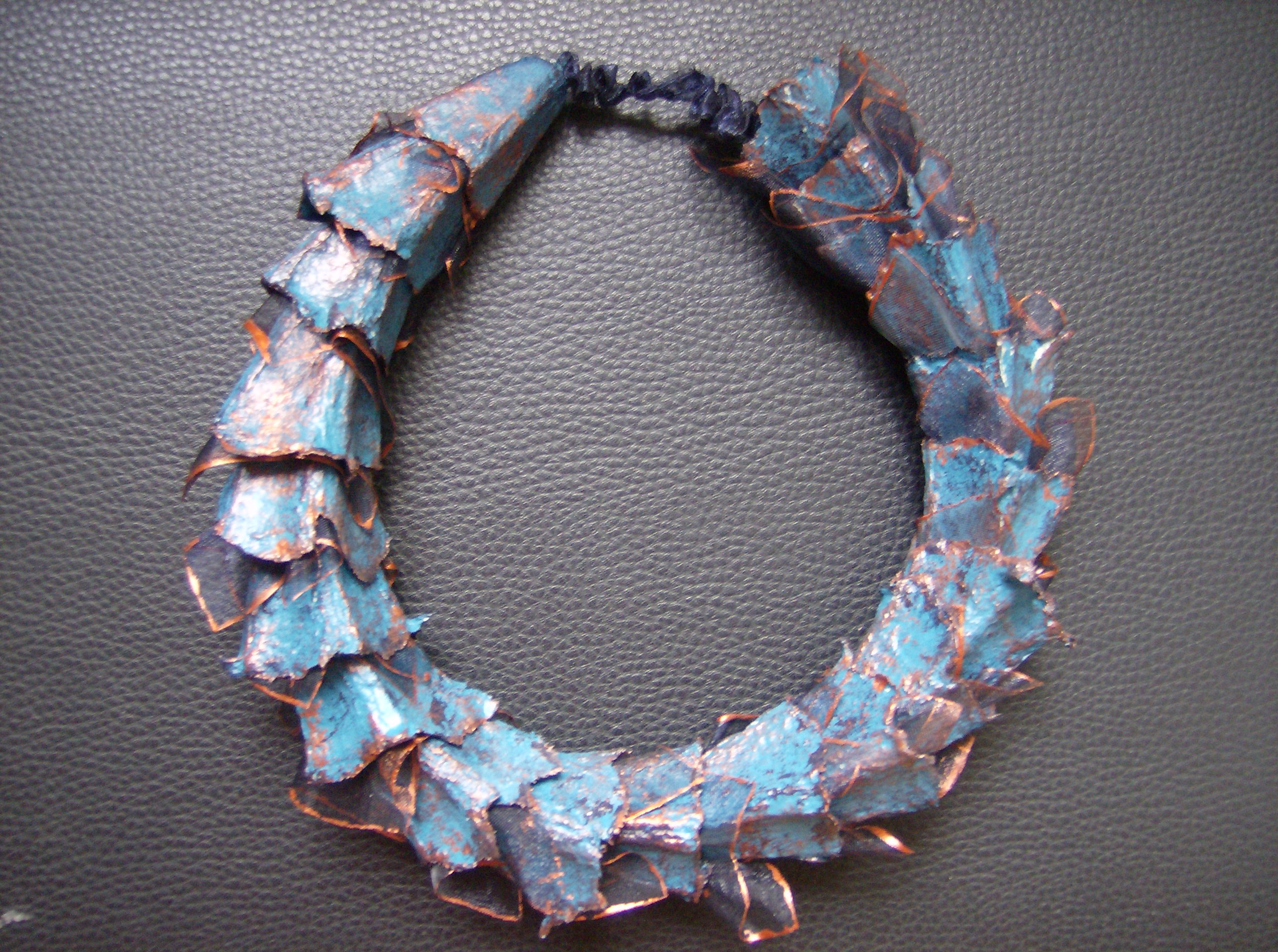 Halssieraad van eierdozen en organza.