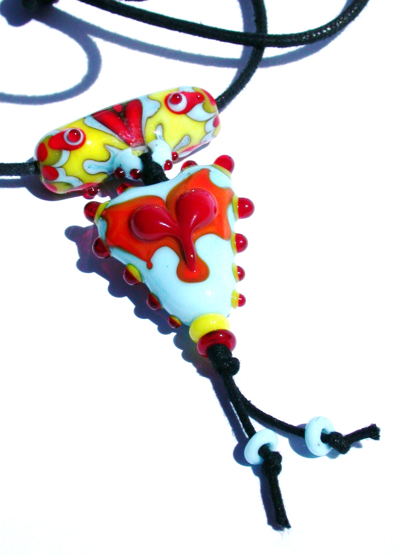 Rachelle van der Bij (geboren op 20-03-1969). 1998 afgestudeerd als Keramisch vormgever aan de kunstakademie van Kampen. Momenteel werk ik met glas waar ik Focals (Kralen en draagobjecten die door hun kleur vorm en formaat los gedragen worden) en complete sieraden van maak.