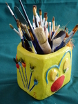 Keramiek met een tikkeltje humor - de laatste jaren durf ik keramiek ook wel mixen met andere materialen.