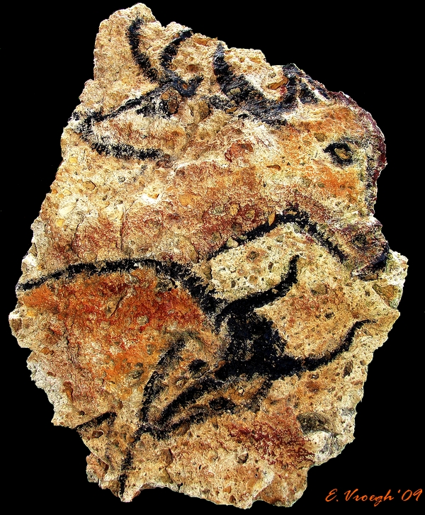 Beschilderde steen met Buffel en hert Impressie van prehistorische grotkunst Une impression de l'art préhistorique en France