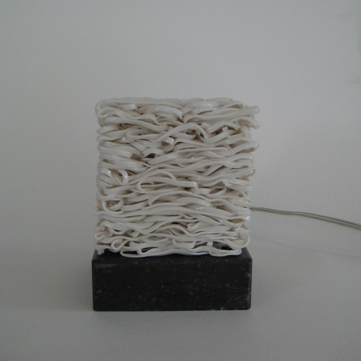 Wit Hardsteen Lichtobject Keramiek Glazuur Kubus Porselein
