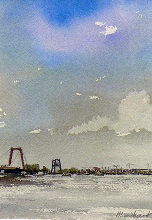 Aquarel Architectuur Nederland Rotterdam Maas Willemsbrug