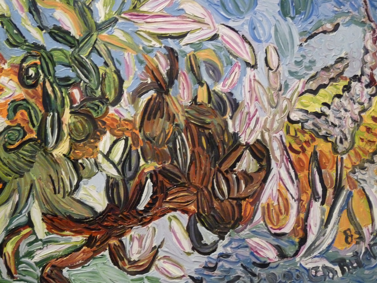Artistiek, ik schilder heel mijn leven, met visie in een eigen stijl neergezet,je houd ervan of niet van, zo eigenzinnig dat ik ben, ga mijn eigen weg, olieverf,fantasie, ik haal inspiratie uit de natuur,en mensen, ik ben filosofisch en een schouwer wat mij boeit neem ik in mij op als ik thuiskom dan wordt wat later schilderen, het pakt meestal anders uit, ik schilder nat in nat zelfbewust opgezet, zonder te poetsen anders slaan de kleuren dood, het beeld streek voor streek erop vlot, elke dag een laag als er vijf lagen opstaan, in de grondverf, dan wordt het schilderen, pure kleuren door de lagen heen, en dan het echte werk. Kleuren zijn belangrijker dan wat erop staat, na jaren lang ploeteren, komt er wel eens wat uit, het is afzien het materiaal kost een vermogen, het is altijd weer ee