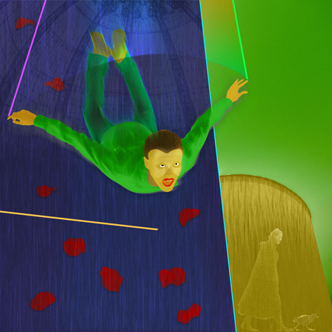 Blauw Groen Rood Rozenblaadjes Acrobaat Sprong