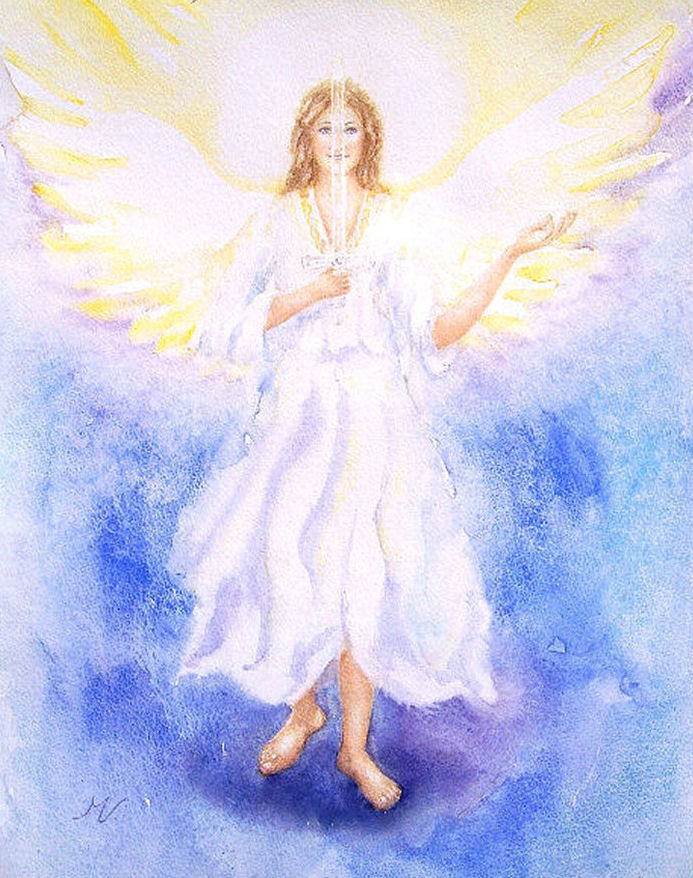 Figuratief Blauw Spiritueel Blue Aquarel Realistisch Engel Angel Engelen Zwaard Transparant Spiritual Realistic Sword Watercollor