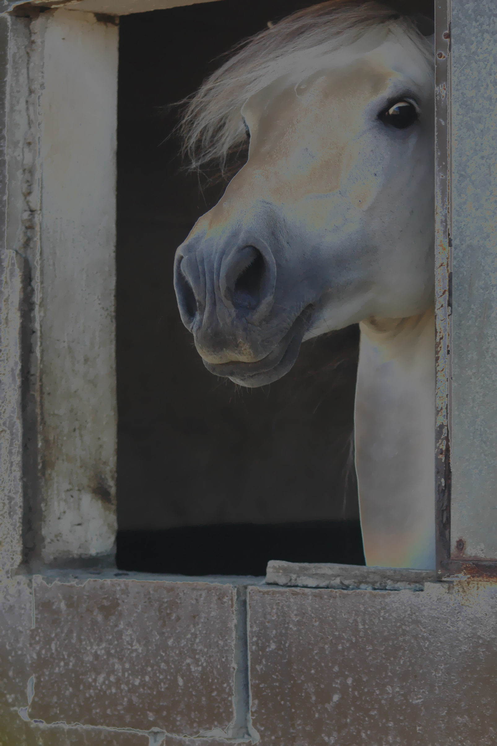 hengst die zich opwindt omwille van een merrie buiten beeld.