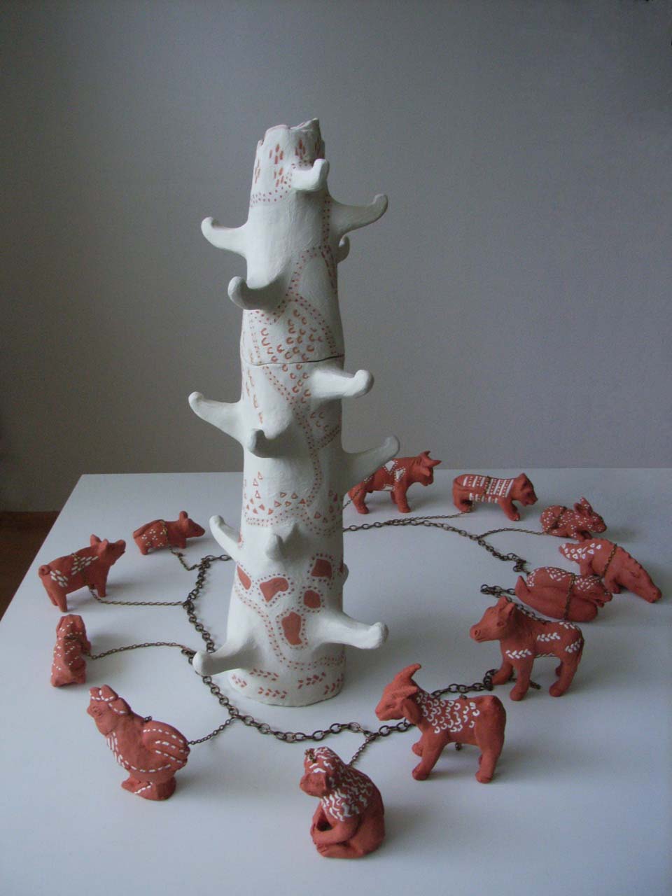 Twaalf Dieren Van De Chinese Dierenriem Verbonden Door Een Keten Gerangschikt Om Boom Engobebeschildering