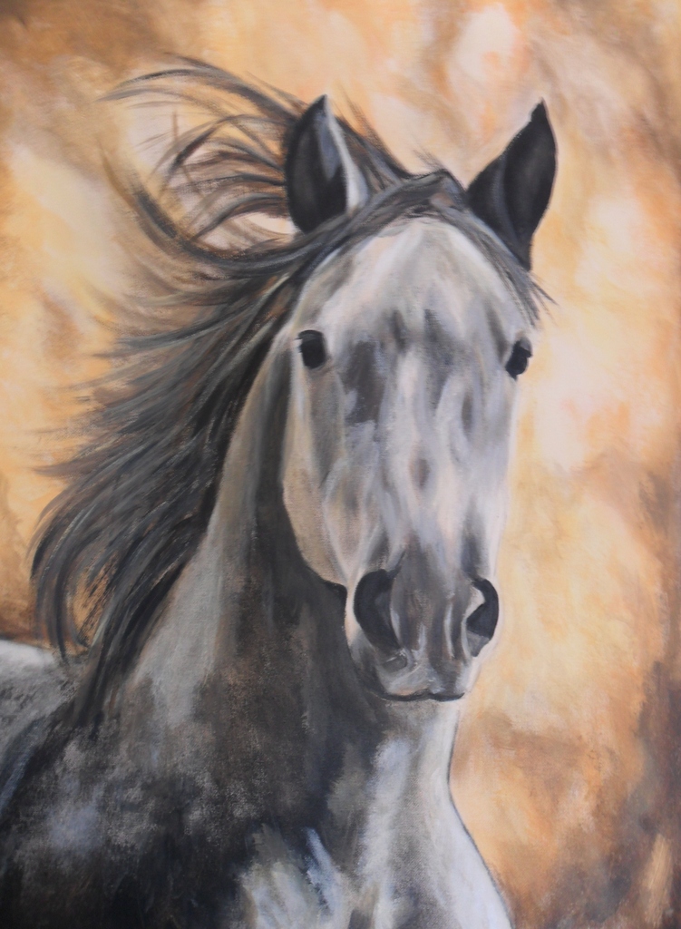 Graag neem ik U mee om een kijkje te nemen in mijn wereld waar paarden een centrale plek innemen. Na jaren actief recreatie ruiter te zijn geweest, zijn deze fascinerende dieren weer op mijn pad gekomen maar dit keer leg ik ze vast op het doek. De verschillende takken van sport, de prachtige uitstralingen en bewegingen, de schoonheid, ik probeer het allemaal te beheersen. Andere dieren schilder ik ook en natuurlijk zijn mijn eigen hond en kat dan ook model geweest.