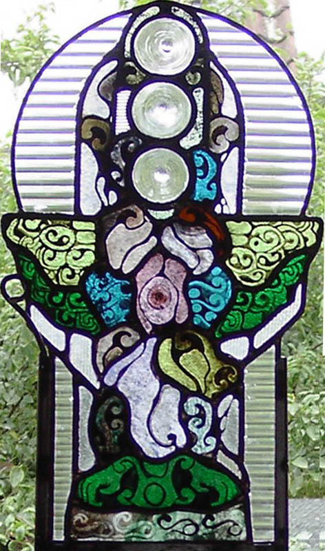 De muzen 3c, bert cox (1966). Glasschilderkunst; gebrandschilderd glas -in-lood Tekeningen in houtskool en andere media.