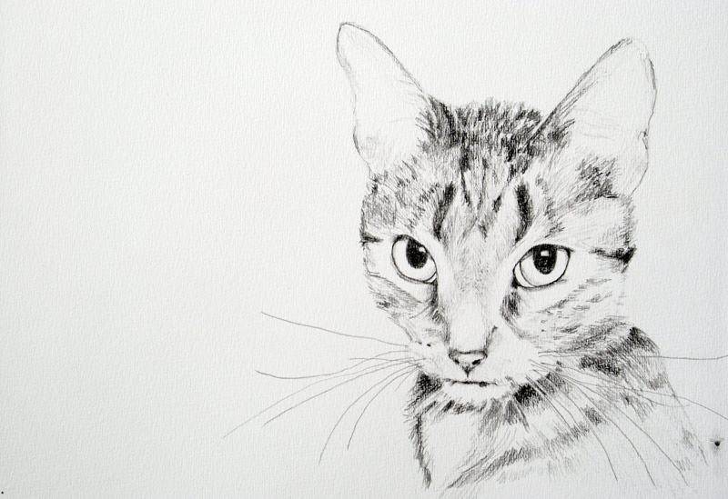 Wit Zwart Potlood Dier Kop Kat Tekening Poes Huisdier Katje Poesje White Black Pencil Animal Cat Drawing Pet