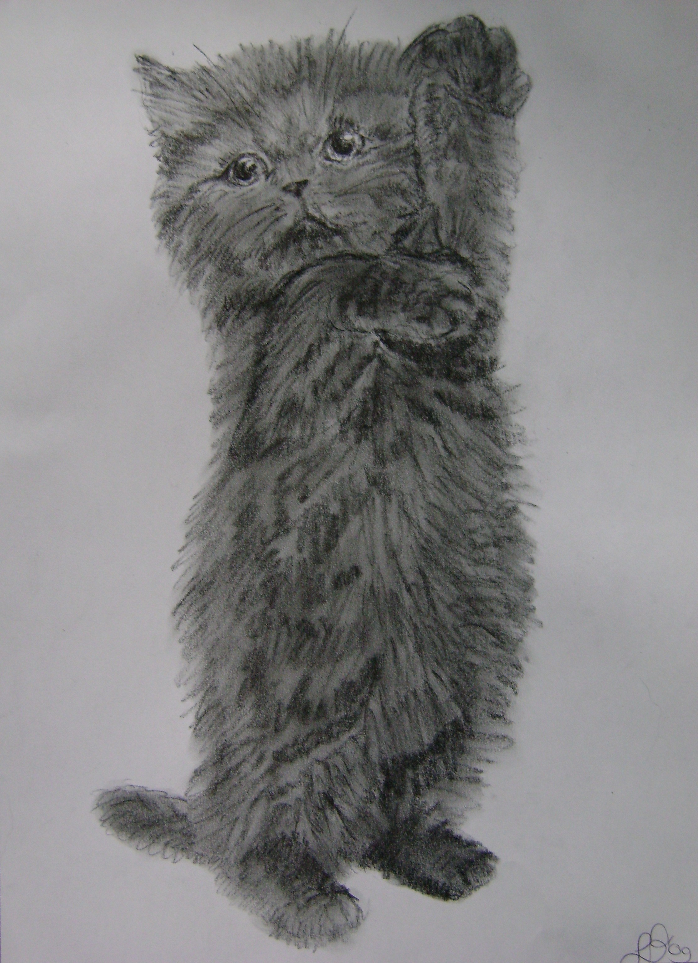 Tekening Cat Kat Kitten Katje Houtskool Dieren Lindabloemheuvel Lbcreations Linda Bloemheuvel Figuratief Realistisch
