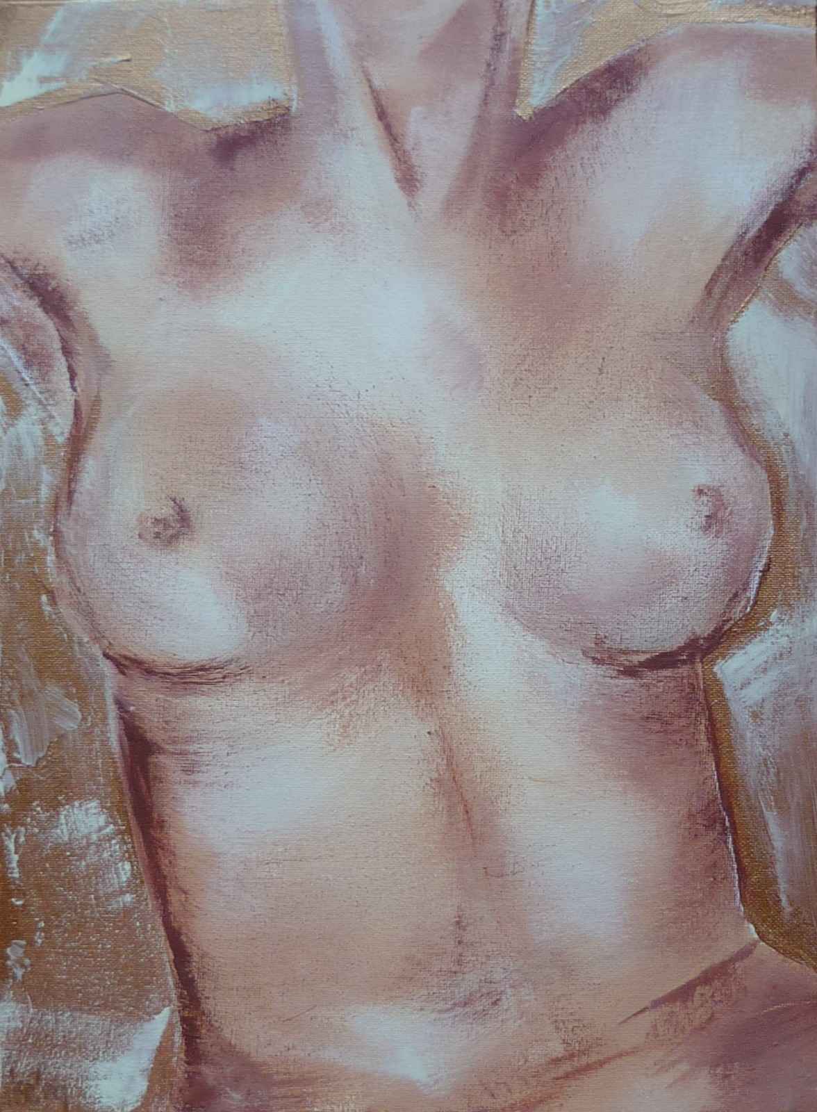 Vrouwen Abstract Figuratief Vrouw Portret Naakt Model Beeld Woman Nude Canvas Vol Torso Bloot Vrouwelijk Borsten Uitdagend Voluptueus Naaktschilderij