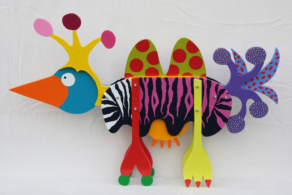 Alle onderdelen van de verkleedbeesten zijn los en kunnen zo tot andere gekke beesten in elkaar gezet worden.