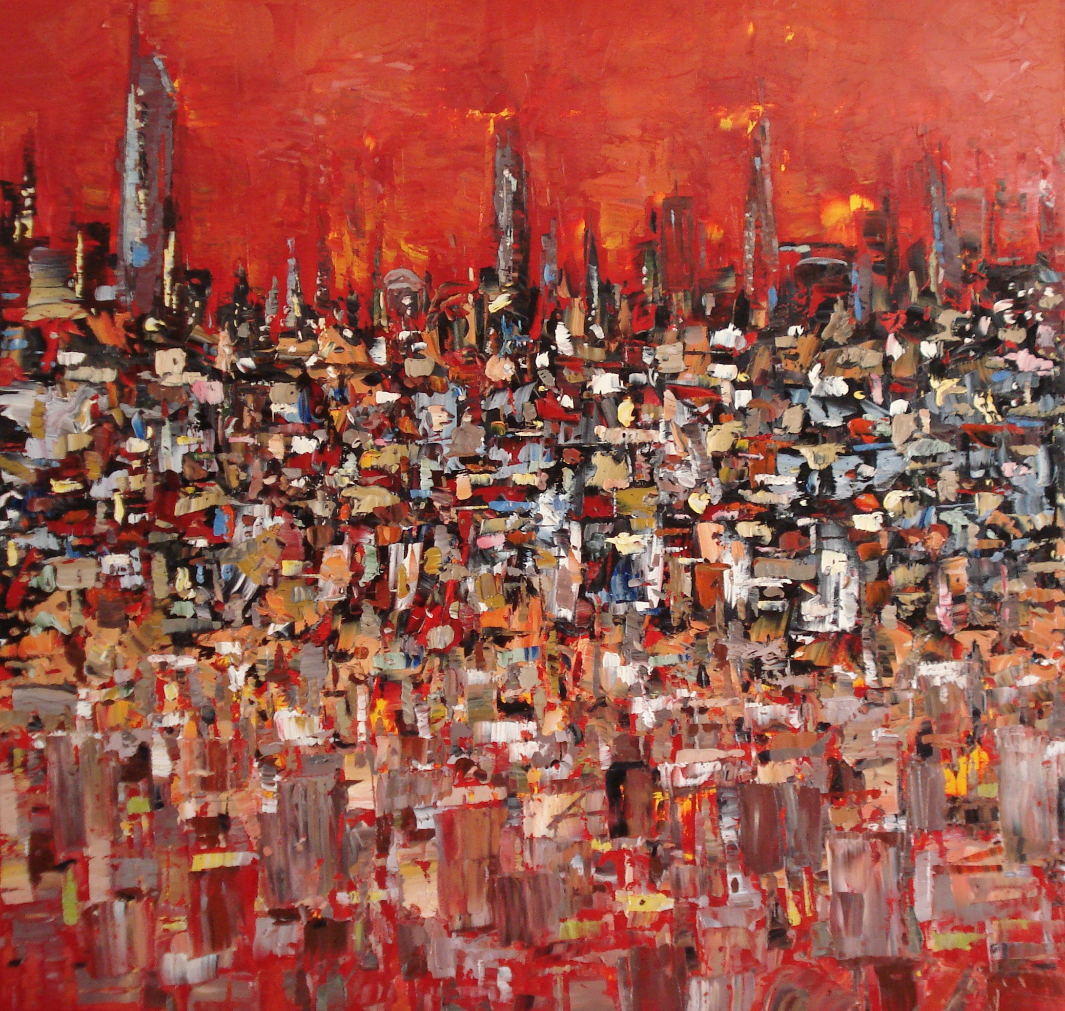 In an era neither future nor past, there exists a city forged not of stone or steel, but of memory and motion. The City That Burned Through Time rises like a fever dream from the ashes of its own becoming, each brushstroke a heartbeat, each smudge a whisper of lives once lived. At first glance, the city blazes with fire—an inferno of crimson skies and smoldering towers. But look closer, and you’ll see the chaos isn’t destruction—it’s persistence. A thousand stories stitched together in pigment: lovers who never met, revolutions that never sparked, artists who painted with their souls rather than their hands. The skyline is jagged, rising like questions in the mind of a restless spirit. Below it, the people—abstracted and myriad—move like sparks in a storm, bound together by something unseen. Hope? Hunger? History? No one knows. Not even the city.