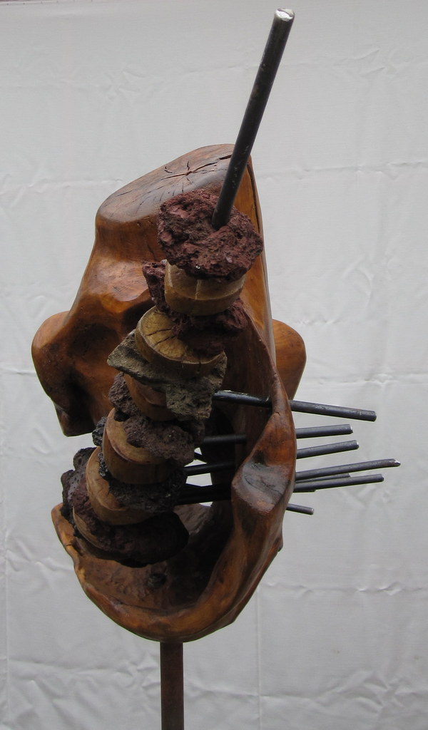 Een leven, ontstaan uit cellen in de natuur Een leven, sterk, buigzaam en krachtig Stormen worden doorstaan, toppen overwonnen Maar dan komt er een barst, de kracht neemt af De dood slaat toe maakt zwak breekt af tot cellen in de natuur Materiaal: hout, ijzer, lavastenen