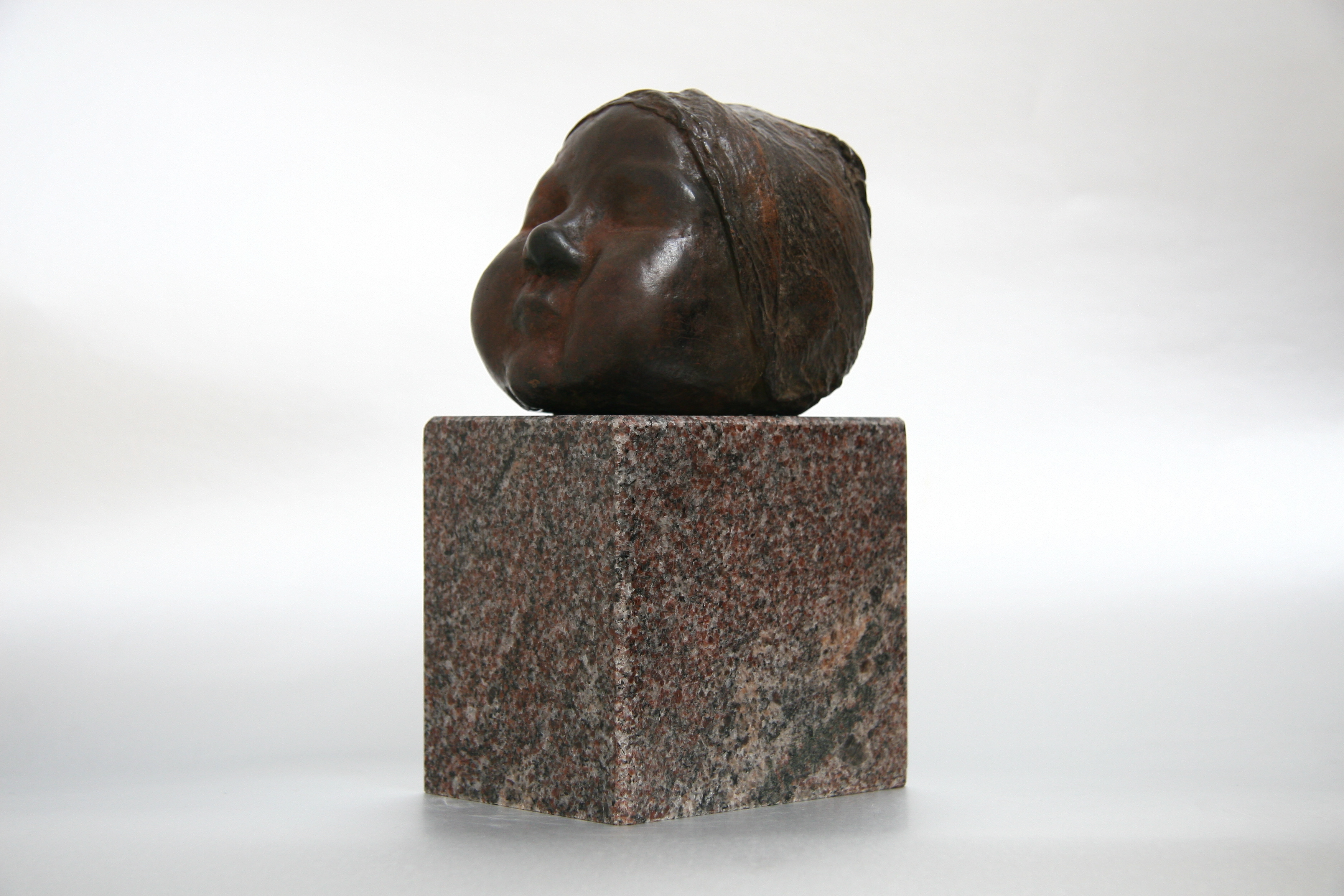 Bronzen kinderkopje. De afmetingen zijn inclusief sokkel. Unicum.