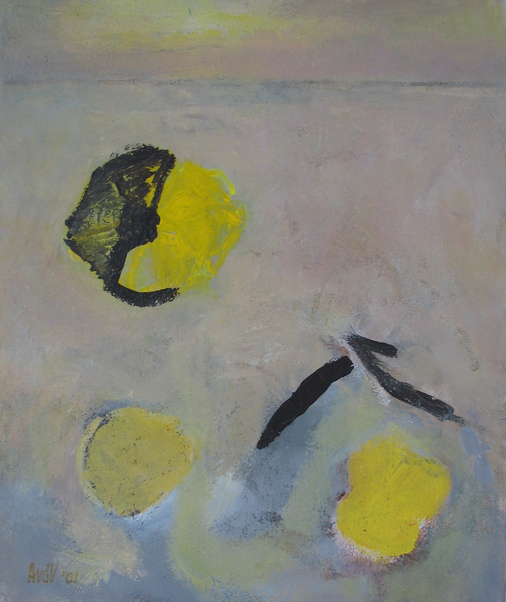 Mijn schilderijen gaan over vergankelijkheid,bomen, weerspiegelingen, zee- en landschappen en bloemvormen. Ik schilder met acrylverf maar gebruik ook collage, inkt, papier, marmerpoeder en zand.