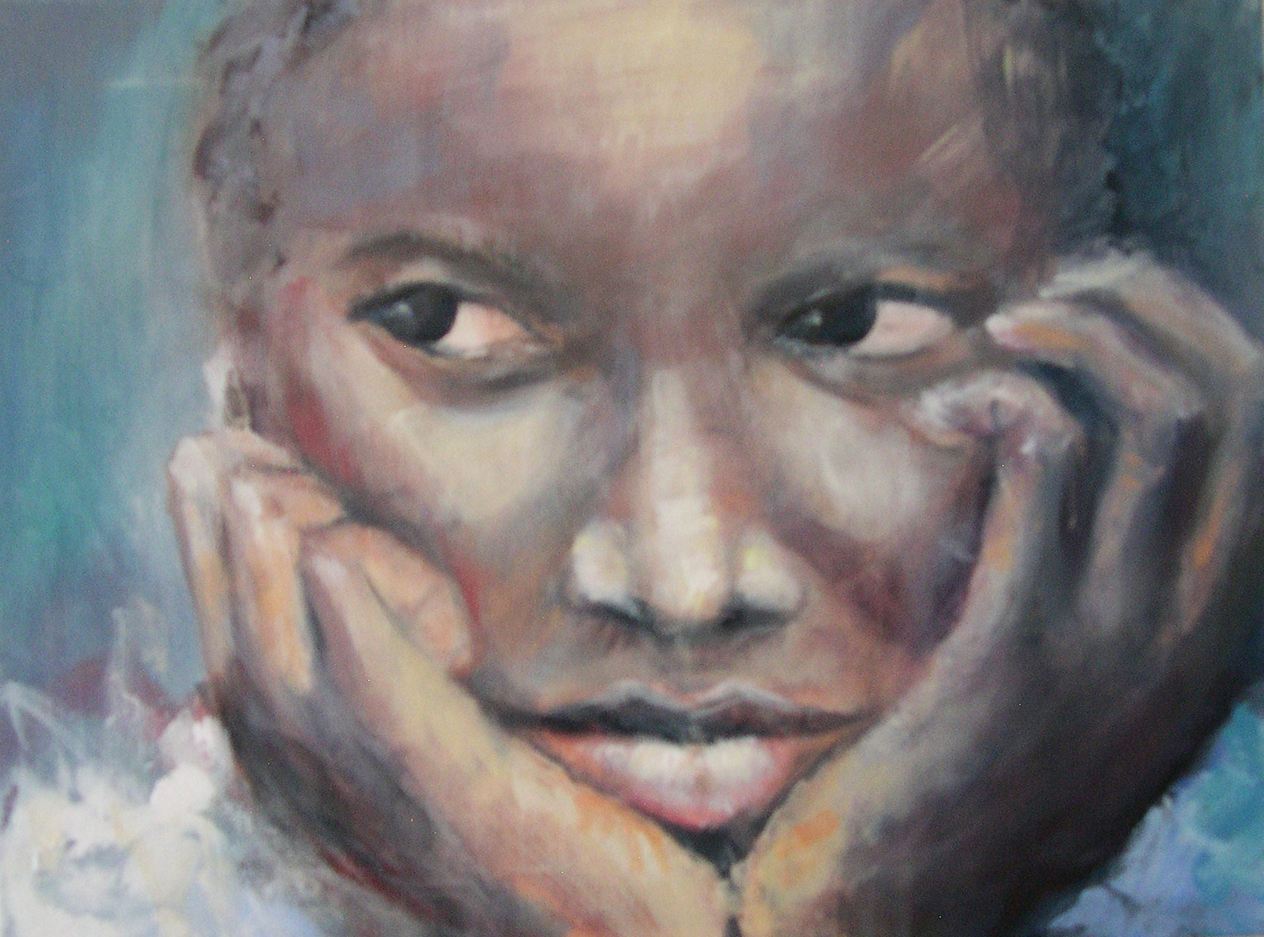 Afrikaans kind met hoofd in de handen