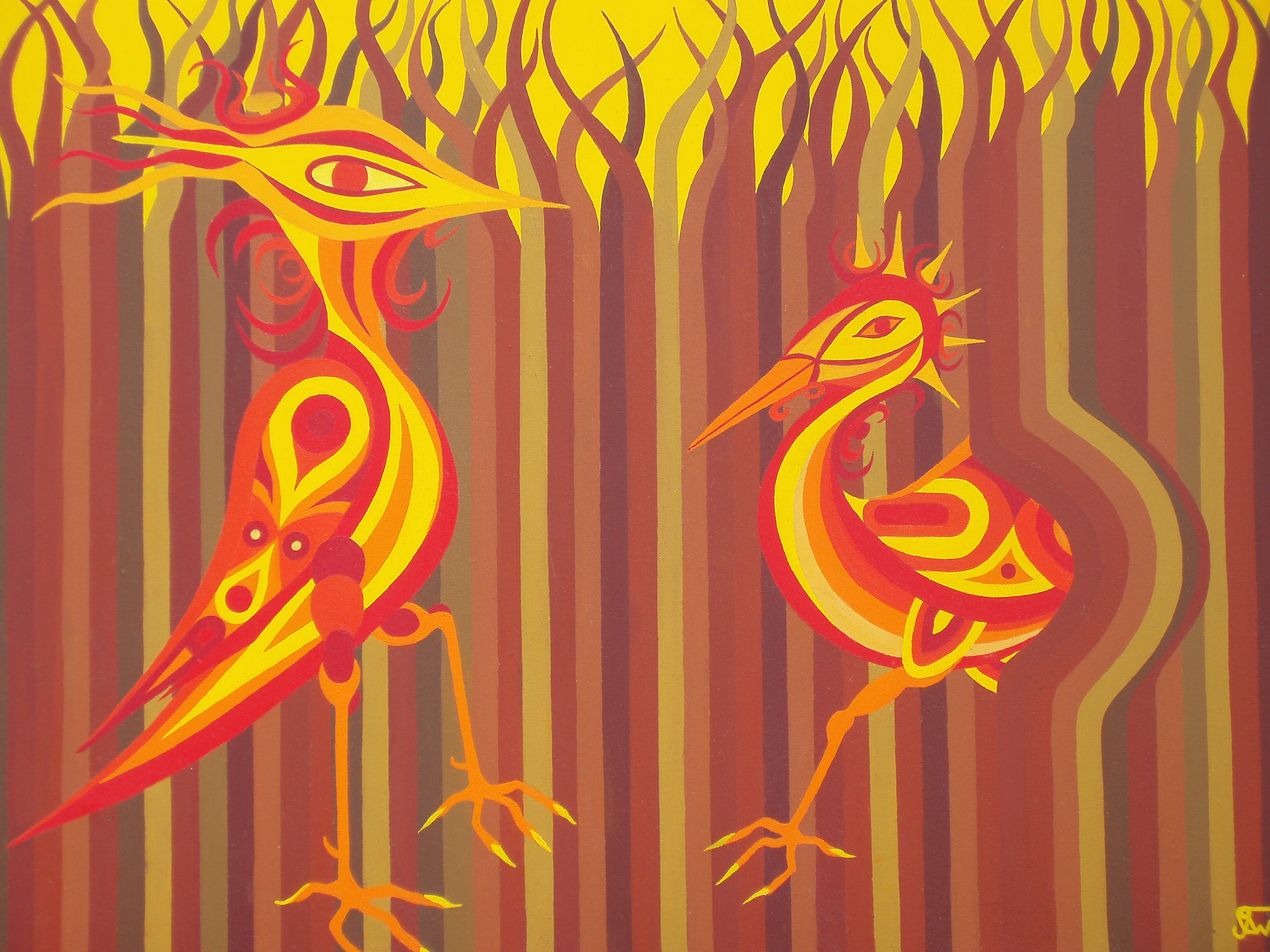 Vogels Olieverf Surealistisch