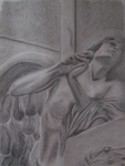 Gemengd werk van tempera met delen olieverf. Een geisha in haar nadagen.