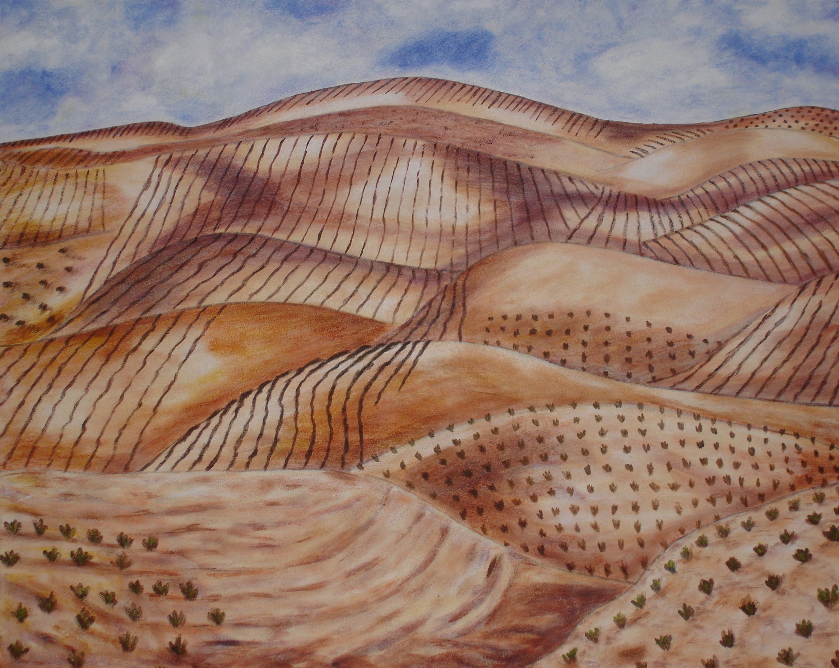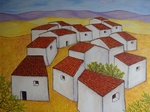 De sfeer van Spaanse dorpen en landschappen beïnvloeden mijn werk. Door een belangrijk overwicht van kleuren te gebruiken en te spelen met contrasten, tracht ik een magische wereld te creëren die vooral vrolijkheid uitstraalt. Ook maak ik gebruik van het gevoel van geluk wat ik voel als ik schilder.