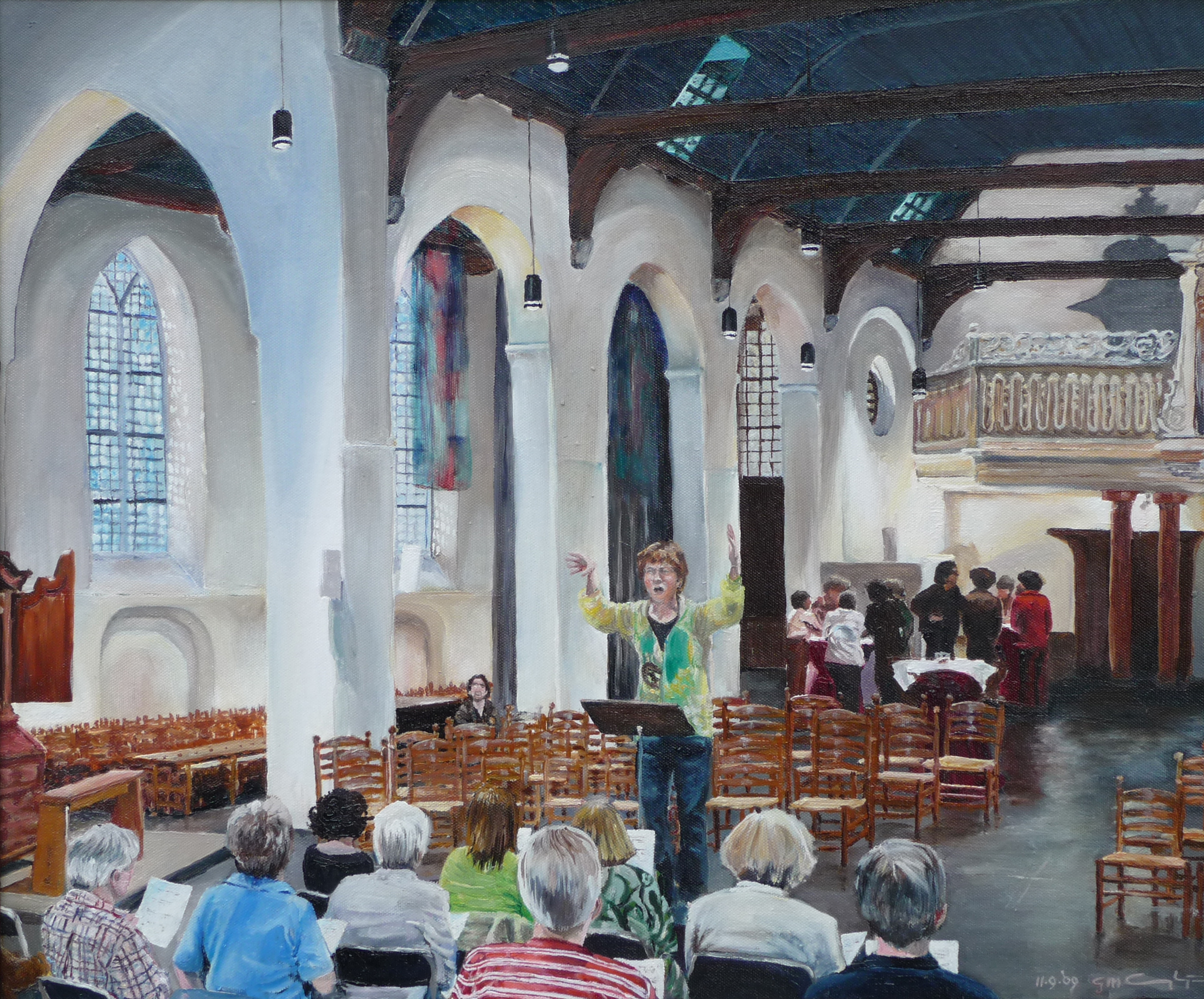 gedurende een hele nacht werd de langste dag gevierd in de Geertekerk. De geertekerk is een plek, waar stemmen van mensen klinken. Het koor repeteert en mensen discussieren.