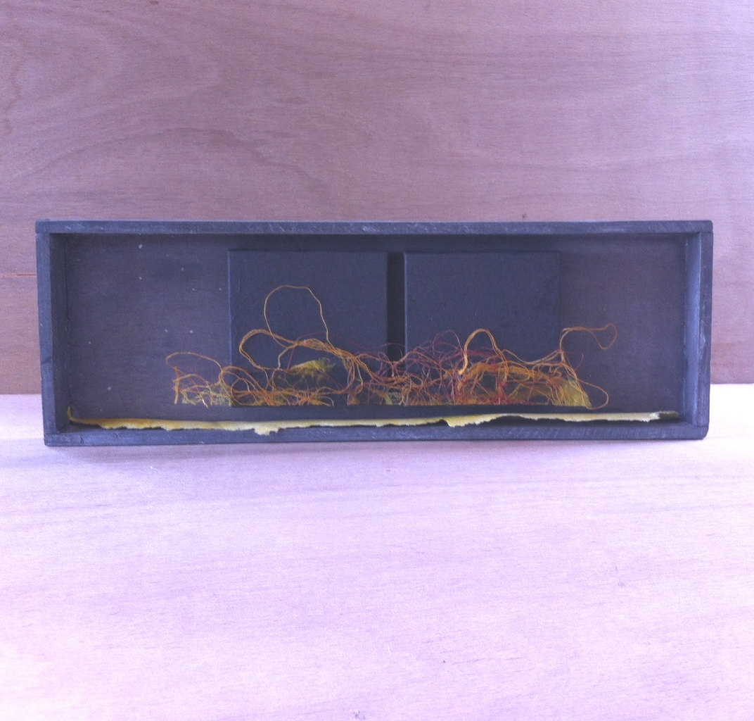compositie van canvas, textielvezelvlies en papier in houten baklijst