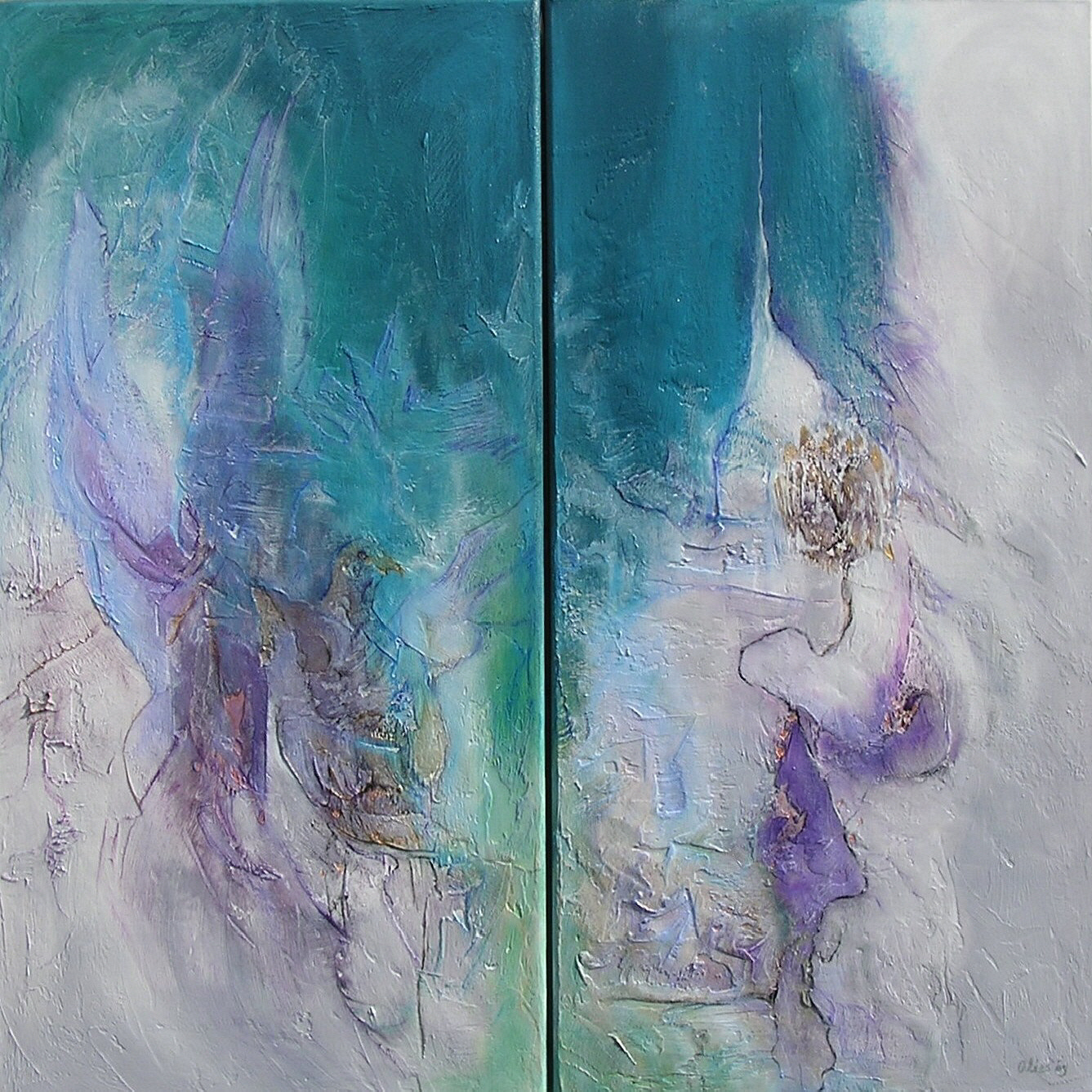 Acryl gespateld op doek (2-luik, 2 x 40 x 80 cm).