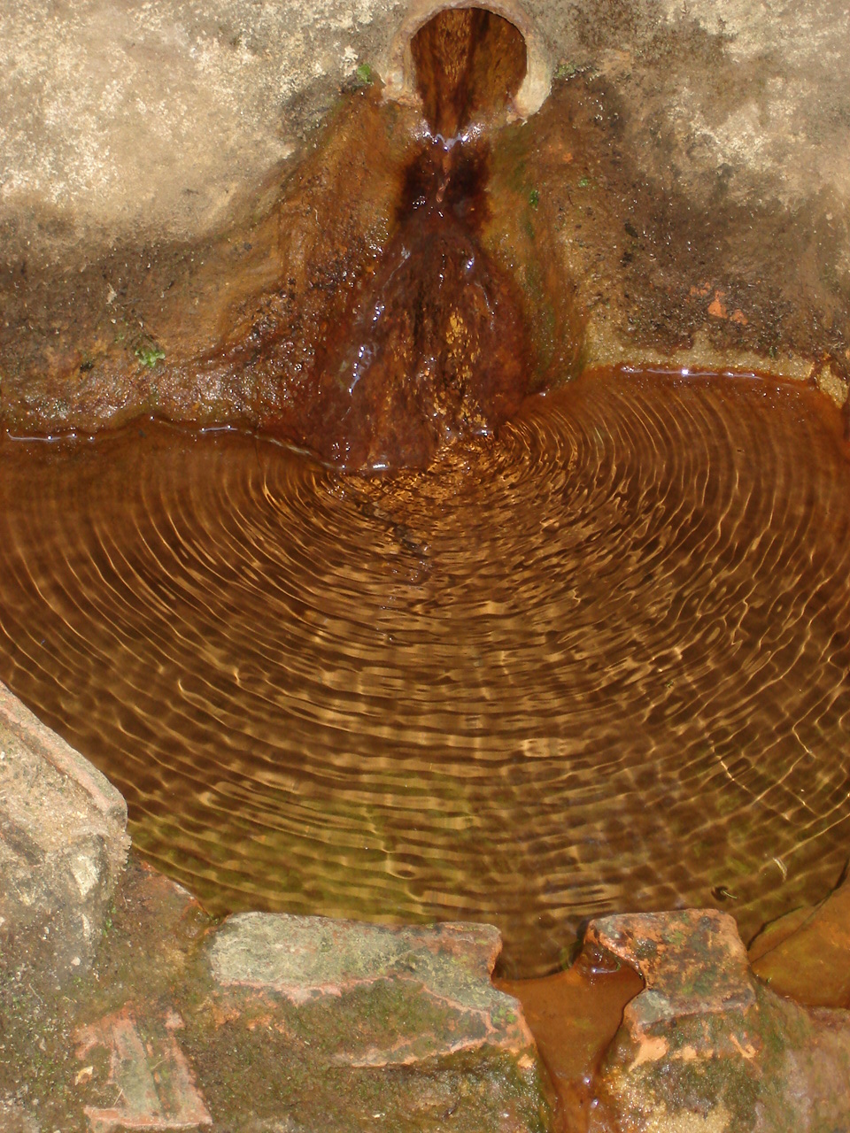 Ringen in een ijzerhoudende bron.