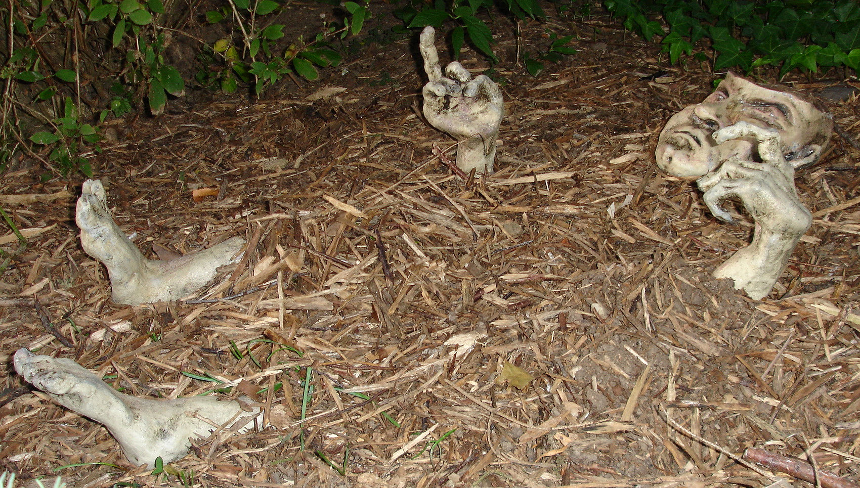 Engelbert komt uit de grond. Tijdens dit proces is een stuk van zijn hoofd afgemaaid.