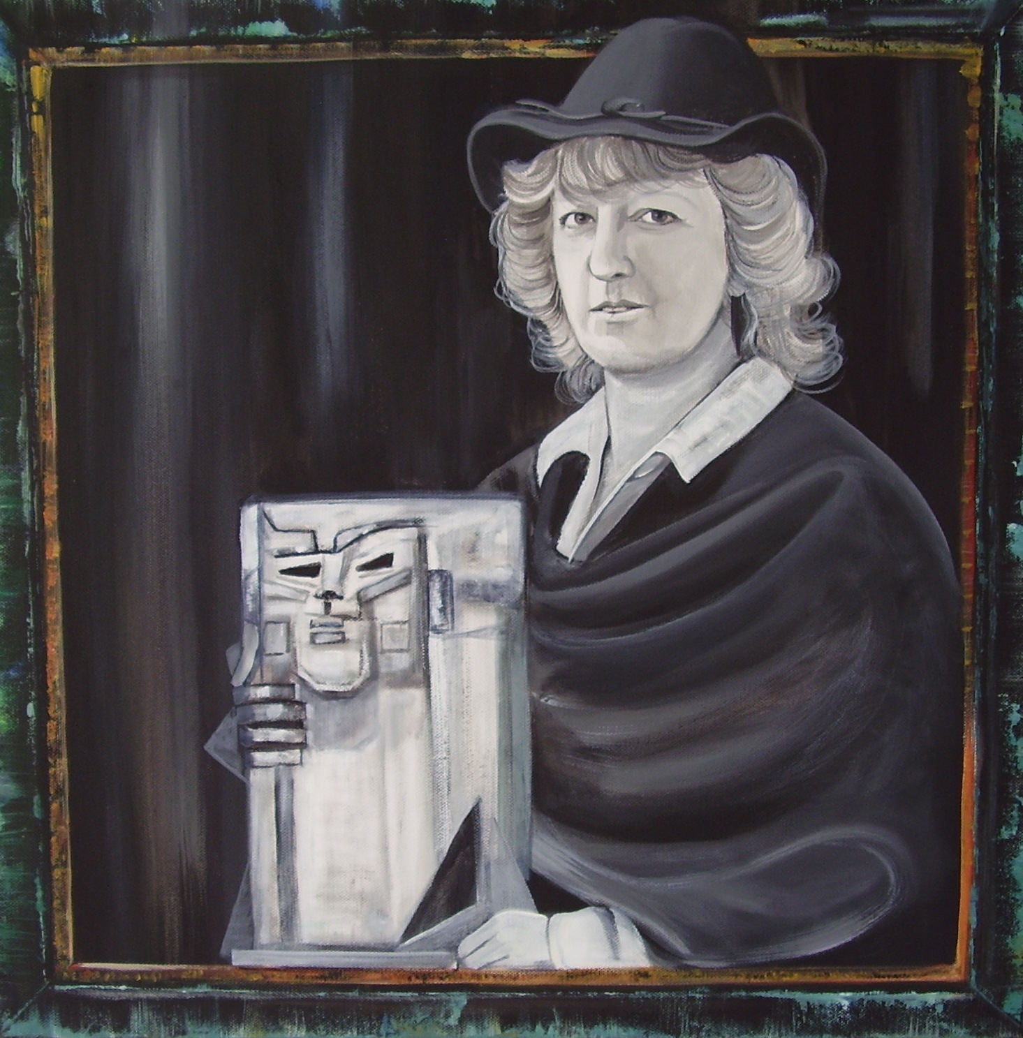 Zelfportret met kunstwerkje.