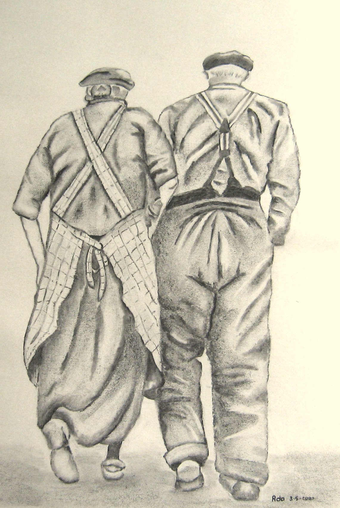 Samen Houtskool Ouderen Wandelen Oud Leven Ouderdom Geluk Eenvoud