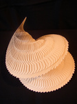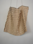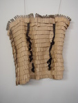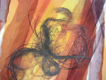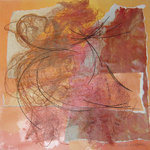 Lagen transparante stof over handgeschept papier waarover spontane stiksels.
