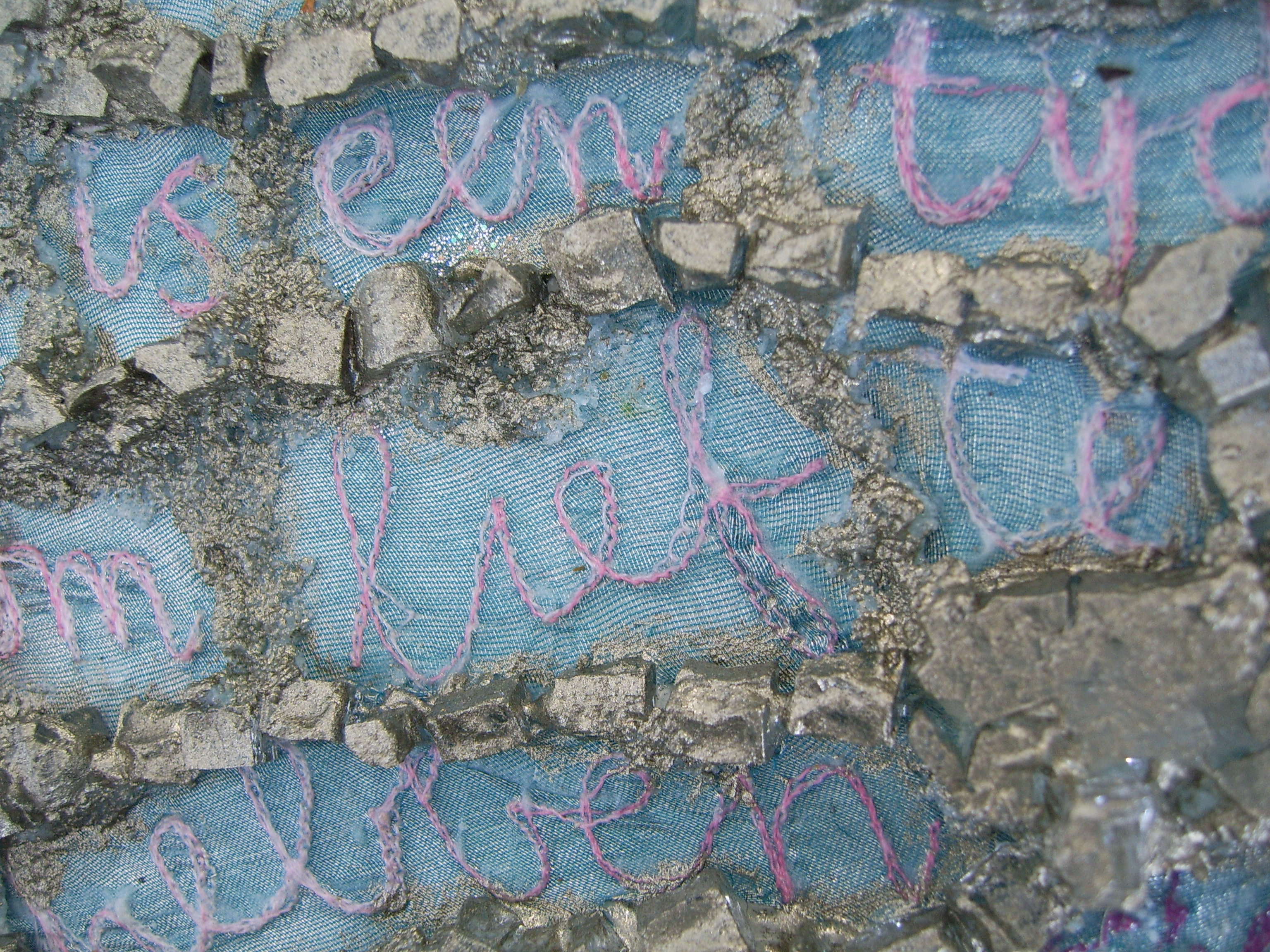 Ik ben een materialen mens, en maak samenvoegingen van verschillende materialen; foto’s, stoffen en borduursels, soms ook gecombineerd met hout, lood en steen, op wisselende formaten