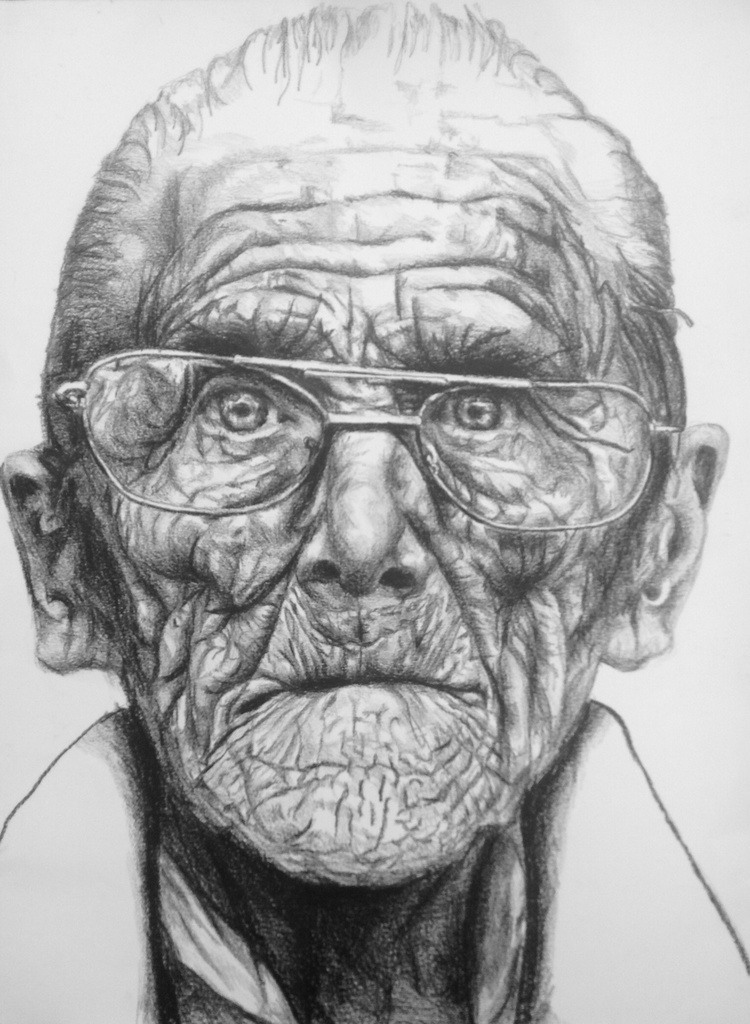 Tekening Portret Man Oud Vagebond Karakterkop Rimpel
