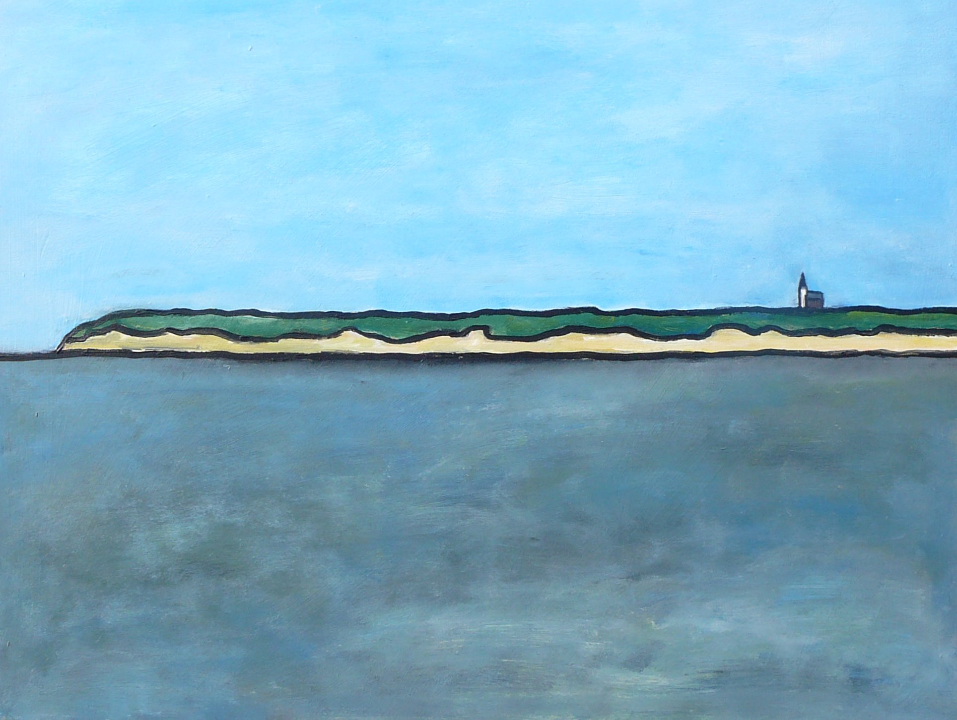 De Texelse toren die nooit weg is. Rank, wit, waakzaam en bijna zwevend. VERKOCHT.