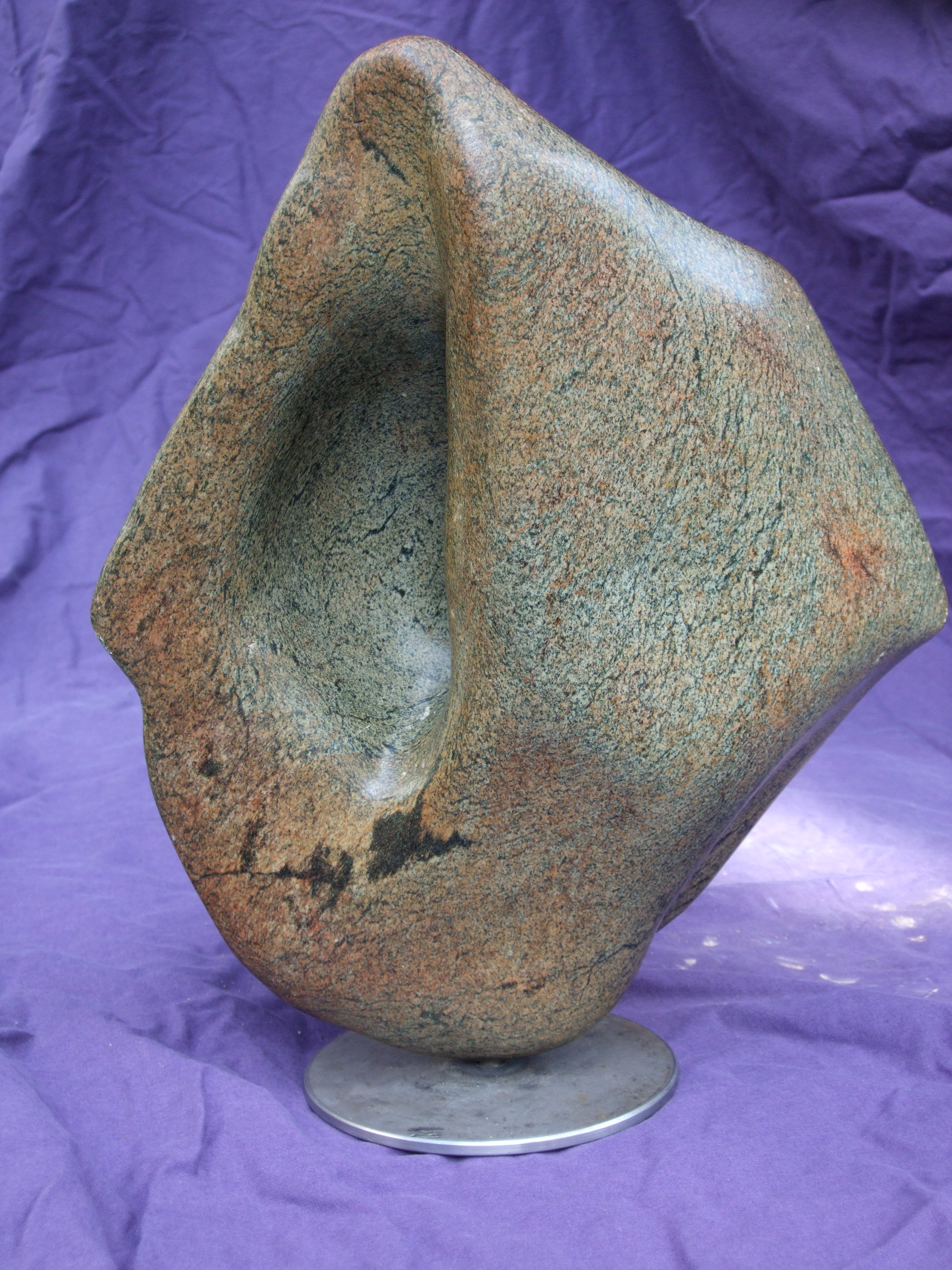 serpentijn met standaard. dit beeld is tweeledig. de achterzijde van deze schelp is yin yang.