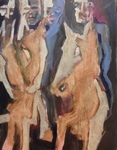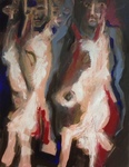 Potlood en houtskool leiden als vanzelf mijn hand over papier en doek. Dat merkte ik al in mijn jongste jeugd. Daarna ging ik op zoek naar de wereld van kleur. Ik keek naar grote voorbeelden in de schilderkunst, vooral de moderne en hedendaagse kunstenaars. Het grote gebaar sprak me aan, een intuïtieve daad stellen. Schilderen vanuit je onderbuik. De belemmeringen bij het volgen van mijn grote voorbeelden staken alras de kop op; mijn ratio zat me meer dan eens in de weg. Dus ondersteuning gezocht bij kunstenaars en kunstdocenten. Sinds '96 ben ik zelfstandig aan het werk in kunstenaarscollectief Troje. Meestal werk ik op groot formaat (120x100) en schilder vrijwel uitsluitend in acryl. De aanleiding voor een werk kan zijn een anekdote, een onverwacht straatbeeld, een foto in de krant.
