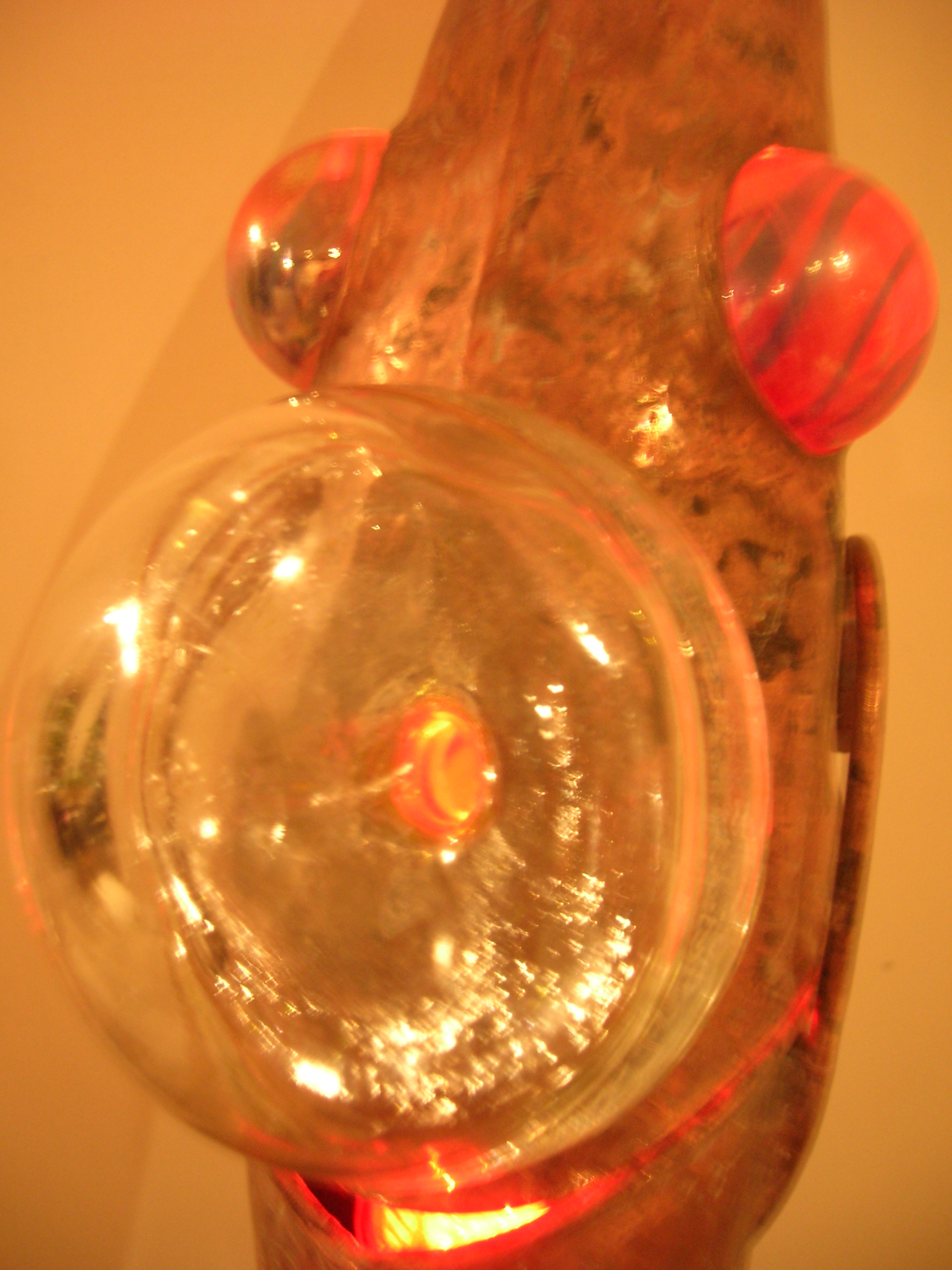 Sculptuur met verlichting gemaakt uit lood en diverse glaselementen.