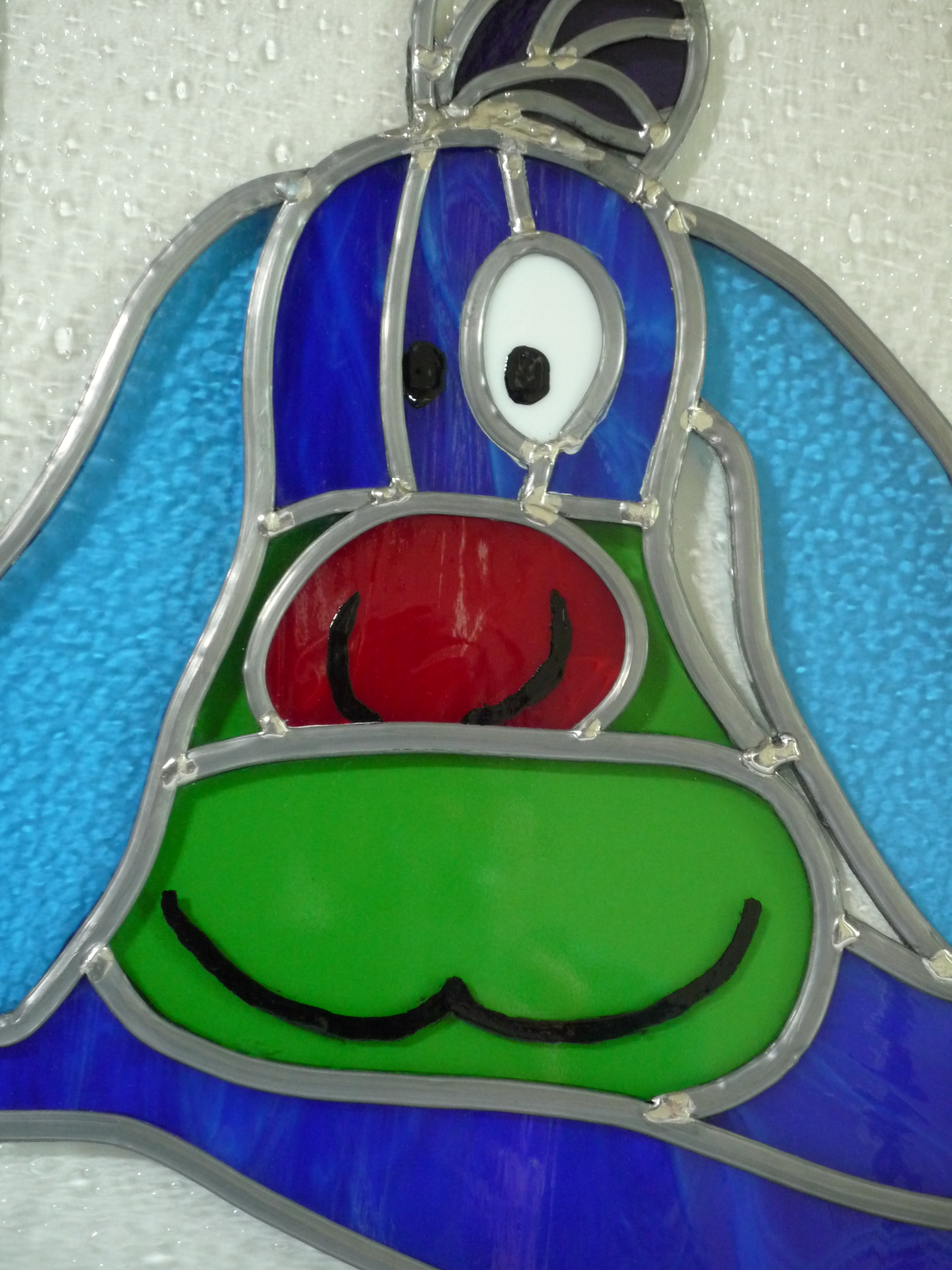 grootouders wensten het knuffeldier van hun kleinkind verbeeld te zien in een glas in loodraam